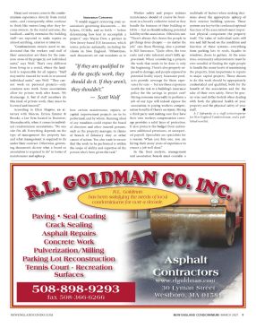 NEWENGLANDCONDO.COM NEW ENGLAND CONDOMINIUM -MARCH 2021 9 Many unit owners come to the condo- minium experience directly from rental units—and consequently, often continue to think like renters long after they be- come owners. In the rental universe, the bylaws, CC&Rs, and so forth — before HOA — but so should reducing potential function of the association’s most impor- landlord—and by extension the building determining how best to accomplish a liability to the association. Often it is not. tant physical component: the property staff—are expected to make repairs on project,” says Wayne Dow, a partner in “There’s always this desire for people to itself. The value of individual units will almost anything, exterior or interior. “Condominium owners need to un- derstand that the workers and staff of clients in New England. “Oftentimes, in JGS Insurance. “Quite often, the true from parking lots to roofs, façades to their association are there for the com- mon areas of the property, not individual units,” says Wolf. That’s very different from living in a rental, where the land- lord is responsible for all repairs. “Staff may not be insured for work in or around individual units,” says Wolf. “They can- not work on personal projects—only common area work. Some associations allow for private work after hours. We discourage it, but if staff members do this kind of private work, they must be licensed and insured.” According to Ellen Shapiro, an at- torney with Marcus, Errico, Emmer & capital improvement projects are to be a third party and making sure they have Brooks, a law firm located in Braintree, performed, and by whom. Running afoul their own workers compensation cover- Massachusetts, when it comes to individ- ual condominium associations, “No one of directors and other insured persons, It also protects the budget from unfore- size fits all. Everything depends on the such as the property manager, to claims seen additional premiums, or unexpect- type of management the property has, of breach of fiduciary duty or other ed payroll. Specialists are specialists for and what management is required to do causes of action. You also want to ensure a reason. When you hire one, you are under their contract. Otherwise, govern- ing documents dictate what a board or the scope of ability and expertise of the ensure a job well done.” association is required to do” in terms of person who’s been given the task.” maintenance and upkeep. Insurance Concerns “I would suggest reviewing your as- sociation’s governing documents — the handle the business of their building or systems are key to the continued optimal New Jersey-based JGS Insurance, which get things done cheaper — no matter the rise and fall based on the condition and writes policies nationally, including for job,” says Ryan Fleming, also a partner function of these systems—everything such documents set out mandates as to costs and risks inherent aren’t fully ap- how certain maintenance, repairs, or sation benefits if there’s an injury. Hiring staff. of any mandates could expose the board age provides a solid layer of protection. that the work to be performed is within hiring their many years of experience to Worker safety and proper systems multitude of factors when making deci- maintenance should of course be front- most in a board’s collective mind as they their exterior building systems. Those preciated. When considering a project, time, community administrators must be the work that needs to be done is only ever-mindful of finding the right people the beginning. There’s also property ex- posed to damage, and people exposed to the property, from inspections to repairs potential bodily injury. Insurance prod- ucts provide coverage for these expo- sures for sure — but are those exposures credentialed and qualified, both for the worth the risk to a building’s insurance benefit of the association and for the policy for the savings in project cost? sake of their own safety. Never be pen- Hiring someone internally to perform a ny-wise and dollar foolish when dealing job of any type will indeed expose the with both the physical health of your association to paying workers compen- In the final analysis, management and association boards must consider a sions about the appropriate upkeep of windows, doors to gutters. At the same to handle the many facets of maintaining to major capital projects. Those chosen to do this work should be appropriately property and the physical safety of your n A J Sidransky is a staff writer/reporter for New England Condominium, and a pub- lished novelist. “If they are qualified to do the specific work, they should do it. If they aren’t, they shouldn’t.” — Scott Wolf