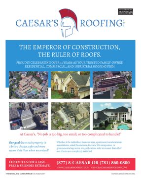 4 NEW ENGLAND CONDOMINIUM -OCTOBER 2021 NEWENGLANDCONDO.COM THE EMPEROR OF CONSTRUCTION, THE RULER OF ROOFS. PROUDLY CELEBRATING OVER 45 YEARS AS YOUR TRUSTED FAMILY-OWNED RESIDENTIAL, COMMERCIAL, AND INDUSTRIAL ROOFING FIRM At Caesar’s, “No job is too big, too small, or too complicated to handle!” CONTACT US FOR A FAST, FREE & FRIENDLY ESTIMATE! Our goal: leave each property in a better, cleaner, safer and more secure state than when we arrived! Whether it be individual homeowners, apartment/condominium associations, small businesses, Fortune 500 companies, or governmental agencies, we go the extra mile to ensure that all of our clients are completely satisfi ed. (877) 8-CAESAR OR (781) 860-0800 WWW.CAESARSROOFING.COM OFFICE@CAESARSROOFING.COM See us at Booth 405