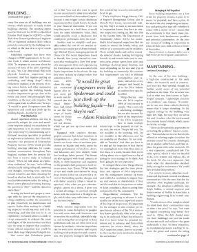 10 NEW ENGLAND CONDOMINIUM -MARCH 2022 NEWENGLANDCONDO.COM every five years on all buildings over six storeys, which amounts to nearly 15,000 buildings citywide. The resulting report must be filed with the DOB by a Qualified Exterior Wall Inspector (QEWI)—a New York State-licensed professional engineer (PE) or registered architect (RA)—who is privately contracted by the building own- er, which in the case of a co-op or condo is the board. Finkelstein explains that there were changes to FISP requirements in the cur- rent Cycle 9, which started in February 2020. “In response to concerns about the accuracy of some of the prior reporting,” he says, “the City determined that more physical, hands-on inspections were necessary. And that requires putting up scaffolding and doing drops”—which Finkelstein explains is the process of us- ing cranes, hoists, and other suspension equipment against the building façade to allow inspectors to get up close to the bricks and assess and photograph their condition, as the new code requires. “All of this again leads to added costs,” he says. “It would be great if engineers were like Spiderman and could just climb up the building façade—but they’re not.” Pain Reduction Absent superhero abilities, one way to potentially mitigate the costs and unwel- come surprises related to a mandatory fa- çade inspection is to do some voluntary “pre-inspecting” by commissioning a pro- fessional envelope specialist to perform an exploratory evaluation. Eric Churchill, executive vice president of Schernecker Property Services (SPS), which provides building envelope solutions for condo- minium communities throughout New England, explains how the process dif- fers from a reserve study or technical report: “When we talk about an explor- atory evaluation,” he says, “we’re talking about actually taking siding off, removing roof shingles, removing trim, exploring around windows, and then educating the board on what we find, to start with. So if you find deterioration under the siding, if there’s rotten plywood or rotting framing, the question is ‘why?’—and the education starts there.” Arming the board and property man- ager with the facts on the structure’s ex- isting conditions enables the association to plan proactively for maintenance and repairs. Rather than waiting for a build- ing inspector to tell you your roof is de- teriorating—and then fine you for it—an exploratory evaluation allows a condo or co-op community to evaluate the cause and degree of the deterioration and then take the steps to improve that condition. Come official inspection day, you’ll be more likely to get that proverbial gold star. One caveat that Finkelstein points out is that “you may also want to speak this resident buy-in can be extremely dif- to your accountant to determine whether ficult to get. you want to finalize \[the resultant\] report, because it may trigger certain disclosure of Regency Management Group, also in requirements that would have to be made Howell, New Jersey, recommends mak- in your financial statements. If you can ing this Step 1 as soon as an association keep the report in a draft form, it would or corporation knows they have an inte- have the same informative value, \[but\] rior inspection coming up. She says that would possibly avoid a disclosure that in the Garden State, the Department of could prove problematic down the road.” Another way to simplify—and pos- sibly reduce the cost of—an exterior in- spection is to make use of drone technol- ogy. Michael Tynan, managing partner of These include smoke and carbon monox- Drone On Pro Aerial Inspections based ide detector checks, looking for tripping in Howell, New Jersey, started his com- pany after working for a New York prop- erty management firm and experiencing buildings, electrical panel function, and the frustrations and costs associated with more depending on the size and type of façade inspections for his clients. He says the building or community. She cautions they were racking up change orders that that requirements can vary in different sometimes drove costs 400% above the origi- nal contracted figures after re- pair crews got to work and dis- covered that the visual inspec- tions had failed to see the true scope of façade issues. So Tynan thought, “Why not use drones, which can get you up close easier and return trips to the property to visit ev- faster?” Equipped with sensitive thermo- graphic cameras that detect variations in not available in the afternoon, and I’m temperature on a given surface, Tynan’s not available on Mondays; I’m not avail- drones can locate areas of moisture pen- etration on façades and roofs; assess the try and get the inspector so that they’re energy performance of windows, doors, not coming back more than three days, or and balconies; and even identify water four days, or a week, because then you’re line breakage below ground. The drones talking about six or eight hours a day of are also equipped with visual cameras, or paying for your manager to be there. And RGBs, to show inspectors and engineers that’s going to be very expensive.” on the ground what’s going on in hard-to- access areas. Says Tynan, “What benefits has two strategies: put the time, proce- co-ops and condo associations by using dure, and expense of DCA inspections these drones is that we can provide a re- view of the building quicker, cheaper, and and establish a resolution to impose fines with better accuracy \[than a visual in- spection\]. Also, when you put a thermo- graphic camera on a drone, it gives you or delay compliance, thus incurring fines a certain advantage: we can look straight and penalties for the community. down, with the camera at a 90-degree an- gle, which takes away reflectance, so you most part, preparing in advance is tech- see the issue better.” Interiors While exterior inspections have the for the manager to als