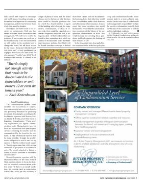 NEWENGLANDCONDO.COM NEW ENGLAND CONDOMINIUM -MAY 2022 7 larly careful with respect to arrearages danger of physical harm, and the board them from claims, and not be indemni- and health issues. Guarding personal in- formation is as important as community there could be financial problems due have covered them under their directors munity. At the same time, it is the board’s transparency, and the line between them, to a theft by a board member or agent and officers and other insurance. In such and management’s responsibility to han- while thin, must be absolute. If residents feel their board is too se- cretive or unresponsive, Wolf says they vere risk; there could be a gas leak or a tion provisions of the bylaws of the co- should articulate those concerns to their similar dangerous condition that is be- management. “We will try to resolve the ing concealed—if the board members are would include not covering fines, pen- problem. If not, owners can reach out to found to have committed acts which are alties, and legal expenses for findings of the board directly. If it’s still unresolved, deemed to be exclusions under the build- we will outline to the residents how to ing’s insurance policies, they likely will change the board. We tell them to run be denied insurance coverage to defend tive communication is the best policy for for the board. If you don’t like the board, vote them out.” A truly problematic or negligent board may also find itself out of a manager; “Frankly,” says Wolf, “I will terminate the contract if a board is too difficult.” Legal Considerations The communication pitfalls board members and associations or corpora- tions may stumble into vary state by state, and governing document by governing document. For example, according to El- len Shapiro, a partner with Marcus, Erri- co, Emmer & Brooks, a law firm based in Braintree, Massachusetts, “There aren’t any requirements for regular commu- nication under Massachusetts law, but there is a requirement that upon request, certain accounting documents must be communicated by the board to the resi- dents. A copy of financial reports shall be made available. It might be an affir- mative obligation to send it out, but my opinion is that the resident must request it. There is a provision that a CPA review statements in properties of more than 50 units. The penalty attached to failure to concur with this provision is reasonable attorney’s fees.” Dennis Greenstein, a partner with the Manhattan offices of law firm Seyfarth Shaw, cautions clients to be on the look- out for potential communication prob- lem areas. “If there is an unsafe condi- tion, for example, such as construction defects that could put the residents in chooses not to disclose or fully disclose; fied under policies that otherwise would parency leads to a more cohesive com- of the building which has put the coop- erative, condominium, or HOA at se- event, the board members also would dle sensitive information correctly both likely not be covered by the indemnifica- operative, condominium, or HOA. This such breaches of law.” In the broader picture, clear and effec- co-op and condominium boards. Trans- for the sake of the community as a whole and the individual residents. n A J Sidransky is a staff writer/reporter for New England Condominium, and a pub- lished novelist. He can be reached at alan@ yrinc.com. “There’s simply not enough activity that needs to be disseminated to the shareholders or unit owners 12 or even six times a year.” — Zach Kestenbaum
