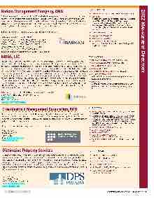 NEWENGLANDCONDO.COM NEW ENGLAND CONDOMINIUM -MAY 2022 9 2022 M anageMent D irectory Barkan Management Company, AMO Barkan Management Company was founded in 1981 on the simple, straightforward principles of hard work, loyalty, and honesty. Over 40 years later, having built its reputation on those very same values, Barkan is recognized as the industry leader in residential property management serving New England and Metropolitan Washington DC. Fueled by integrity and professionalism, as well as a fierce dedication to providing exemplary service, the company boasts a diverse portfolio of cli- ents ranging from suburban townhome communities to ultra-luxury urban high-rises. Barkan Management Company: People you can trust. Experience you can rely on. Barkan Management Company, Inc., AMO® 7 Wells Avenue, Suite 11, Newton, MA 02459 • 617-484-5500 22 Boston Wharf Road, F7, Boston, MA 02210 • 617-482-5500 3282 Main St., Barnstable, MA 02630 • 508-625-3655 10 Weybosset St., Providence, RI 02903 • 401-272-0788 121 Main St., Rockville, CT 06066 • 860-633-6110 8229 Boone Boulevard, Tysons Corner, VA 22182 • 703-388-1005 OUR COMPANY 4 DESIGNATIONS/AFFILIATIONS AMO, CPM, PCAM, AMS, CMCA, CPA 4 KEY PEOPLE President Daniel Bauman, Senior Vice Presidents, Michael Feltenberger CMCA, AMS, PCAM, Janet M. Meaney, CPM , Vice Presidents, ® Jerry Meaney, Maria Palmieri, CMCA, Laura Waldrop, CPM , ® Peter Westhaver, CMCA, AMS, PCAM, Chief Financial Officer M. James Merski,CPA, and Chief Administrative Officer Russell Johnson,CPM. 4 DIRECT OFFICE EMPLOYEES 70 4 ASSOCIATIONS MANAGED 190 4 UNITS MANAGED 30,000+ 4 GEOGRAPHIC CLIENT CONCENTRATION Massachusetts, Connecticut, Rhode Island, Maine, Washington DC, Maryland and Virginia BRIGS, LLC BRIGS is a full service residential real estate firm specializing in condominium management, and apartment management. We provide customer satisfaction through personalized service, professionalism, efficient operations and asset management. We have built a strong reputation by providing owners and residents with personalized service while maximizing value and efficiency. All of our property and portfolio managers have had extensive training and experience in all areas of residential real estate. Add to this the experience of our accounting staff and our maintenance personnel and it’s obvious that the cumulative expertise of BRIGS provides a wealth of knowledge to meet the challenges encountered in all aspects of residential real estate. We believe that our client is not just the trustees of the properties we manage but also the people who own or reside at the properties as well. Through consistent day-to- day monitoring of our properties, planning for the long term financial and maintenance needs and encouraging resident participa- tion, we are able to meet our objective of complete customer satisfaction. BRIGS is part of an elite group of community association management companies who have earned the designation of Accredited Association Management Company (AAMC). BRIGS is one of less than 250 management companies nationwide and one of only three in all of New England to have earned the highest level of professional recognition in the community association field. Offices in Arlington, MA, Boston MA, Holliston MA, Peabody MA and Salem NH Corporate Office: 185 Dudley Street, Boston, MA 02119 swolf@brigsllc.com Phone: 617-536-4900 - Fax: 617-536-0821 info@brigsllc.com • www.brigsllc.com OUR COMPANY 4 DESIGNATIONS/AFFILIATIONS AAMC, PCAM, AMS, CMCA 4 KEY PEOPLE Scott Wolf, Owner, PCAM, AMS, CMCA 4 DIRECT CENTRAL OFFICE EMPLOYEES 87 4 UNITS MANAGED 11,800 4 GEOGRAPHIC CLIENT CONCENTRATION New England 4 VALUE-ADDED TECHNOLOGIES Web-based software applications for bookkeeping, association records, and monthly reports. 4 STRENGTHS All managers are credentialed with extensive training, In-house accounting services, Consistent day-to-day monitoring of proper- ties. Crowninshield Management Corporation, AMO In business since 1973, Crowninshield is committed to providing the highest level of service to our clients. We achieve this goal through strict attention to detail, frequent and effective communication, and an unsurpassed level of professionalism. The Crowninshield team is a dedicated professional group. At Crowninshield, our priority is to stay current with the latest trends, laws and policies that may affect a client’s property. Our goal is to create a harmonious living environment for all homeowners. 9 Atlantic Avenue Marblehead, MA 01945 1-800-439-4801 E-mail: info1@crowninshield.com www.crowninshield.com OUR COMPANY 4 DESIGNATIONS/AFFILIATIONS AMO, CMCA, PCAM, ARM, CPM, PHM, RPA, AREM, IREM, CAI 4 KEY STAFF Deborah Collier-Comins, CPM, PCAM, ARM, CMCA, President, Stuart Comins, CPM, PCAM, CMCA, Vice President, Janet Perez-Frye, Controller, Vice President, Nick Ruccolo, CPM, PCAM, CMCA, PHM, Vice President, Rosemary Riccio, CMCA, AMS, Director of Operations, Jill Fama, CMCA, Regional Manager, Chris Fritz, Regional Manager, Adrian Litscher, CMCA, Regional Manager 4 DIRECT CENTRAL OFFICE EMPLOYEES over 25 4 ASSOCIATIONS MANAGED 60+ 4 UNITS MANAGED 5,500+ 4 GEOGRAPHIC CLIENT CONCENTRATION Massachusetts, New Hampshire, Connecticut 4 VALUE-ADDED TECHNOLOGIES Lock box, auto direct payment, web portal Distinctive Property Services Distinctive Property Services is a full service Property Management Company serving the South Shore and the Cape & Islands for over 15 years. Our team of in house professionals is committed to continuing our tradition of excellent cus- tomer service, which is a standard that our clients have come to expect. It is our belief that in order for an Association to be managed effectively, the formula starts with being proactive rather than reactive. This approach requires excellent com- munication, careful attention to detail and a broad knowledge of facilities management. Distinctive Property Services is large enough to manage complex Association