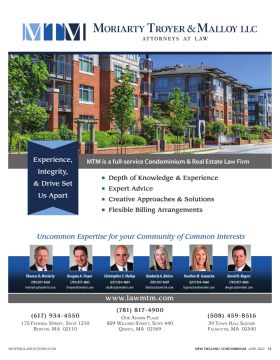 NEWENGLANDCONDO.COM NEW ENGLAND CONDOMINIUM -JUNE 2022 13 ■ Depth of Knowledge & Experience ■ Expert Advice ■ Creative Approaches & Solutions ■ Flexible Billing Arrangements (781) 817-4900 O NE A DAMS P LACE 859 W ILLARD S TREET , S UITE 440 Q UINCY , MA 02169 (617) 934-4550 175 F EDERAL S TREET , S UITE 1210 B OSTON , MA 02110 (508) 459-8516 39 T OWN H ALL S QUARE F ALMOUTH , MA 02540 C ONDO M EDIA • 8.25 10.875 X www.lawmtm.com MTM is a full-service Condominium & Real Estate Law Firm Experience, Integrity, & Drive Set Us Apart Uncommon Expertise for your Community of Common Interests David M. Rogers (781) 817-4606 drogers@lawmtm.com Kimberly A. Bielan (781) 817-4607 kbielan@lawmtm.com Heather M. Gamache (617) 934-4660 hgamache@lawmtm.com Christopher S. Malloy (617) 934-4604 cmalloy@lawmtm.com Douglas A. Troyer (781) 817-4605 dtroyer@lawmtm.com Thomas O. Moriarty (781) 817-4603 tmoriarty@lawmtm.com