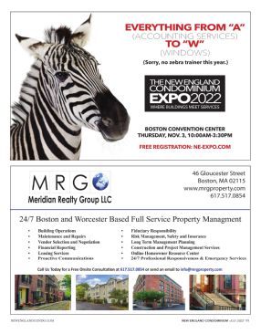 house ad NEWENGLANDCONDO.COM NEW ENGLAND CONDOMINIUM -JULY 2022 11 BOSTON CONVENTION CENTER THURSDAY, NOV. 3, 10:00AM-3:30PM FREE REGISTRATION: NE-EXPO.COM THE NEW ENGLAND CONDOMINIUM EXPO 2022 WHERE BUILDINGS MEET SERVICES EVERYTHING FROM “A” (ACCOUNTING SERVICES) TO “W” (WINDOWS) (Sorry, no zebra trainer this year.)
