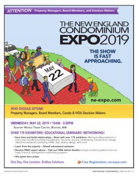 NEWENGLANDCONDO.COM NEW ENGLAND CONDOMINIUM - FEBRUARY 2019 3 MAY 2 2 OVER 175 EXHIBITORS! EDUCATIONAL SEMINARS! NETWORKING! • Save time and build relationships – Meet with over 175 exhibitors offering endless solutions in every area including building management, insurance, security, landscaping, maintenance, energy, telecommunications, plumbing, HVAC, fuel, interior design, and more. • Learn from the experts – Attend educational seminars. • Receive FREE expert advice – Visit our FREE Advice Booths and get valuable guidance from our legal, financial, management and building experts. • Win great door prizes. WHO SHOULD ATTEND Property Managers, Board Members, Condo & HOA Decision Makers Free Registration: ne-expo.com WEDNESDAY, MAY 22, 2019 • 10AM - 3:30PM S EAPORT W ORLD T RADE C ENTER , B OSTON , MA One Day. One Location. Endless Solutions. ne-expo.com THE SHOW IS FAST APPROACHING. ATTENTION Property Managers, Board Members, and Decision Makers THE NEW ENGLAND CONDOMINIUM EXPO 2019