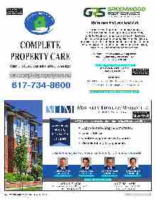 24 NEW ENGLAND CONDOMINIUM — MAY 2019 NEWENGLANDCONDO.COM COMPLETE PROPERTY CARE www.completepropertycare.net Community-based repair and maintenance services 617-734-8600 ■ Depth of Knowledge & Experience ■ Expert Advice ■ Creative Approaches & Solutions ■ Flexible Billing Arrangements Thomas Bhisitkul (781) 817-4611 tbhisitkul@lawmtm.com Christopher S. Malloy (781) 817-4604 cmalloy@lawmtm.com Douglas A. Troyer (781) 817-4605 dtroyer@lawmtm.com Thomas O. Moriarty (781) 817-4603 tmoriarty@lawmtm.com (781) 817-4900 30 B RAINTREE H ILL O FFICE P ARK , S UITE 205 B RAINTREE , MA 02184 (617) 934-4550 265 F RANKLIN S TREET , S UITE 1801 B OSTON , MA 02110 www.lawmtm.com MTM is a full-service Condominium & Real Estate Law Firm Experience, Integrity, & Drive Set Us Apart Uncommon Expertise for your Community of Common Interests See us at Booth 102 See us at Booth 304 We’ve seen it all, and fi xed it all. A scheduled roof inspection or maintenance call may discover an issue that needs repair. This is what you want, to identify trouble spots as early as possible and make repairs before the condition escalates. What sets Greenwood Roof Services apart from many in this industry is that when needed, our maintenance crew can draw on the resources of our production division to rapidly assemble the team needed to complete any repair. We have certifi ed teams working across New England daily and on call 24/7. 508-865-4040 Ext. 301 services@greenwood-industries.com 455 Fortune Blvd., Suite 17 Milford, MA 01757 See us at Booth 107