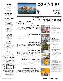 June Law & Legislation July Budget & Finance August Insurance/Board Training September Energy & the Environment October Board Operations November Building Maintenance December Safety & Security COMING UP TABLE OF CONTENTS THIS MONTH’S FOCUS: DESIGN THE CONDO, HOA & CO-OP RESOURCE CONDOMINIUM NEW ENGLAND DEPARTMENTS: 6 Pulse/ Calendar 7 Legal Q&A 21 Expo-Pull-out Guide 26 Management Directory 42 Marketplace NEWENGLANDCONDO.COM NEW ENGLAND CONDOMINIUM — MAY 2019 5 Publisher Yale Robbins yale@yrinc.com Executive Vice President Henry Robbins henry@yrinc.com Associate Publisher Joanna DiPaola joanna@yrinc.com Advertising Director Alyce M. Hill alyce@yrinc.com Senior Editor Hannah Fons hannah@cooperator.com Associate Editors David Chiu david@cooperator.com Pat Gale patgale@yrinc.com Staff Writers Michael Odenthal michael@yrinc.com Alan J. Sidransky alan@yrinc.com Art Director Shirly Korchak shirly@yrinc.com Production Manager Aetna Dowst aetna@yrinc.com Traffic Coordinator Victor Marcos victor@yrinc.com Copyright 2019 by New England Condominium Magazine LLC, dba Community Association Publishing. All rights reserved. No part of this publication may be reproduced or transmitted in any form or by any means without prior written permission. New England Condominium is published monthly in New York, New York by New England Condominium Magazine LLC, dba Community Association Publishing, 205 Lexington Ave., 12th Floor, New York, NY 10016. 508-753-4630. ISSN 1550-946X. Periodical postage paid at New York, New York and additional mailing offices. Subscriptions are available free by request to condominium and homeowner associations. POSTMASTER: Please send address changes to New England Condominium Magazine, 205 Lexington Avenue, 12th Floor, New York, NY 10016. FREE Subscriptions for Board Members, Trustees, Property Managers and Real Estate Decision Makers. To Subscribe, please visit us at: newenglandcondo.com/subscribe Design by Committee By Mike Odenthal Every member of a community association has a vested interest in the appearance of their property, both inside and out. Residents see the inside of their building every day, so it matters that it’s visually appealing. 8 10 Alteration Agreements By A.J. Sidransky So, you want to renovate your kitchen. You’ve chosen your tile, cabinetry, and fixtures. You’ve gotten bids from several contractors, and are ready to dig in and overhaul the whole space. But not so fast. Repurposing Unused Space By A.J. Sidransky Ideas about architecture, design and the use of space have changed over the years. Back in the first half of the last century when both developers and consumers had different needs and agendas than they do today (not to mention less advanced technology), giant boil- ers, elevator machinery, fuel storage tanks, and other mechanical systems were housed in building basements and sub-basements. 14 Management: Considering a Change in Management? By Mike Odenthal When a community association enters into a contract with a professional management company, board members may feel a sense of relief. After all, much of the burden of run- ning the community’s daily operations has now been transferred to (hopefully) capable hands, leaving the board more time to focus on members’ own affairs. 16 The Latest in Green Design By Mike Odenthal Even before Rep. Alexandria Ocasio-Cortez (D-NY) introduced the Green New Deal resolution to Congress on February 7, the impending consequences of climate change and global warming has been a hot topic (no pun intended). 12 Management: Co-ops, Condos & Kids By Mike Odenthal While children are most certainly the future, in the present they can often be a bit of a handful. In buildings and associations where residents live in close quarters, it’s inevitable that unit owners without kids will cross paths with their neighbors’ young ‘uns. 18 TRENDS: 32 What Does the Rest of 2019 Hold? By Mike Odenthal 2018 – and the first half of 2019 – have been anything but dull, from the global level all the way down to co-op, condo and community association communities. MANAGEMENT: 34 Keys, Key Fobs, and Door Codes By A.J. Sidransky It’s been a long time since most people have felt comfortable just leaving their front doors unlocked. MAINTENANCE: 36 Soundproofing By A.J. Sidransky Do you remember when you were a kid, and the closest thing you had to a cell phone was two cups with a string pulled taut between them, speaking into one cup to see if your friend hold- ing the other could hear you?