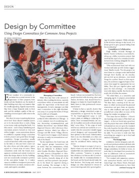 8 NEW ENGLAND CONDOMINIUM — MAY 2019 NEWENGLANDCONDO.COM E very member of a community as- sociation has a vested interest in the appearance of their property, both inside and out. Residents see the inside of their building every day, so it matters that it’s visually appealing. Equally importantly, they have a large financial stake in their unit, and the aesthetic quality of the sur- rounding common spaces adds value to the unit itself. But when it comes to making decisions about how those shared common spaces are to be decorated, there is such a thing as too many cooks spoiling the broth. For this reason – and to keep remodeling and renovation projects focused on time and within budget – some associations choose to establish a separate design committee to helm projects and guide them through completion. Design committees usually consist of members with some experience in the field, or who just have a keen eye for color, décor, and what makes a space appeal to a broad array of tastes. These committees work with the board, man- agement, residents and outside vendors to make the design choices for the building, and can occasionally command a portion of the association budget. So it makes sense to establish a transparent process by which decisions are made, resources allo- cated, and experts consulted. Managing a Committee While they may have a fair amount of latitude when making decisions, separate committees within an association are still under the supervision of the board and management. As such, managers can help steer a committee in the right direction, and jump in to pump the brakes if things start to drift out of bounds. “Using a committee – or a commission, as they’re often referred to in Chicago – is a very common way of considering inte- rior decorating recommendations and holiday decorations,” says Richard Hiles, Regional Director with Lieberman Man- agement Services, which has offices in Chicago and Elk Grove Village, Illinois. “It’s a great way to engage a small amount of owners to make recommendations out- side of the board.” “In my experience, the board may call their support groups ‘committees,’ but in reality they are commissions, which have no authority to disburse funds,” adds Claudia Oberthier, Regional Direc- tor with Associa Chicagoland in Scha- umburg, Illinois. “The commission meets with vendors, basically doing all of the research, and then presents any propos- als to the board for approval during a board meeting. The manager is the li- aison between the commission and the board. I always recommend that the fewer people involved with choosing colors and themes, the better. And, should there be a designer on hand, the board should abso- lutely listen to that professional’s recom- mendations.” It helps to have a specific charter that delineates a design committee’s scope of responsibility as approved by the board. “If the board-approved scope is only carpet, paint, or adding or replacing fur- niture, those recommendations can usu- ally be handled internally without outside help,” notes Hiles. “If the scope of work involves an entirely new aesthetic or a re- model, then the committee should engage several designers and recommend their best options to the board. Unfortunately, there is no clear threshold as to when one should hire a designer. Several factors must be considered before making that choice. “Interior design is an aspect of our in- dustry where you must start off with the mindset that you cannot please everyone,” Hiles continues. “Someone is going to hate whatever it is that you do! A commit- tee should offer its recommendations to the board, and the board should make the final decision. That being said, mock-up designs are often displayed to owners at annual meetings and other special gather- ings for public comment. While ultimate- ly the decision belongs to the board, it is always good to get a general feeling from the membership.” Committees in Collaboration Hugh Shaffer, General Manager at Harbor Towers in Boston, is currently fin- ishing up a lobby renovation project that involved the input of a commercial archi- tectural firm working alongside the asso- ciation’s design committee. “\\\\\\\[The architectural firm\\\\\\\] met with our trustees and came up with various sugges- tions,” Shaffer recalls. “For this project, we went down to a design center and looked through their facility, sat on couches, put our feet up on ottomans... just tested things for comfort. Based on that experi- ence, the architects suggested types of fur- niture that might be appropriate for our lobby. They also put together plans and specs for wall coverings – we eventually went with Italian marble. But the firm ba- sically led all of the discussions. “We asked them, as a committee and managing agent, to prepare presentation boards for the residents,” he continues. “We then had a meeting of all the resi- dents in which we discussed the planned renovations and gave them an opportu- nity to offer feedback and input, which actually had a clear effect on some of the things the vendor was going to do. “One issue that we did have – if there’s one learning curve aspect of this that I can impart – is that we found out a good way into the project that some of the furniture we’d picked out was not up to the standard fire code, based on the type of fire systems we have in this particular property,” Shaf- fer adds. “So you have to make sure that everything you acquire is up to local and national ordinances.” The Design Side Architects, interior designers, and oth- er relevant professionals have all dealt with their fair share of community association design committees, for better or worse. As such, they’ve developed best practices for how to collaborate with an association’s internal team most effectively. “I’ve worked with numerous commu- nity association boards, and it’s been a mixed bag,” sa