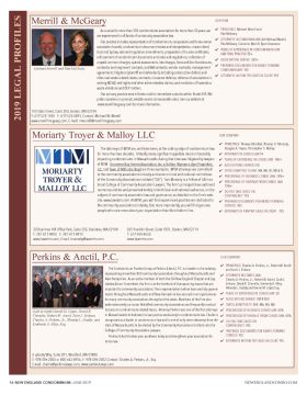 2019 LEGAL PROFIL Perkins & Anctil, P.C. OUR COMPANY 4 PRINCIPALS Charles A. Perkins, Jr., Robert W. Anctil and Scott J. Eriksen 4 ATTORNEYS IN CONDO LAW Charles A. Perkins, Jr., Robert W. Anctil, Scott J. Eriksen, David R. Chenelle, Kimberly A. Alley, Rhonda L. Duddy and Daniel M. López Esq. 4 YEARS OF EXPERIENCE IN CONDO LAW 30 4 ASSOCIATIONS SERVED OVER 850 4 STATES ADMITTED TO BAR MA, NH, MD 4 PERCENTAGE OF BUSINESS CONDO LAW 65% 4 PERCENTAGE OF REVENUE FROM CONDO LAW 65% 4 DO YOU TAKE CASES ON CONTINGENCY YES 4 PREPARED DOCUMENTS FOR NEWLY FORMING CONDOS YES 4 ATTORNEYS IN FIRM TRY CASES IN COURT YES 6 Lyberty Way, Suite 201, Westford, MA 01886 T: 978-496-2000 or 800-642-4906, F: 978-496-2002 Contact: Charles A. Perkins, Jr., Esq. E-mail: charlie@perkinslawpc.com, www.perkinslawpc.com (Left to right) Daniel M. López, David R. Chenelle, Robert W. Anctil, Scott J. Eriksen, Charles A. Perkins, Jr., Rhonda L. Duddy, and Kimberly A. Alley, Esq. The Condominium Practice Group at Perkins & Anctil, P.C. is a leader in the industry, representing more than 850 community associations throughout Massachusetts and New Hampshire. As an active member of both the CAI New England Chapter and Leg- islative Action Committee, the firm is at the forefront of championing issues that are important to community associations. Their representation before town and city govern- ments throughout Massachusetts and New Hampshire has secured municipal services for many community associations throughout the states. Members of the firm also write extensively on issues that affect community associations and frequently conduct lectures on condominium-related topics. Attorney Perkins was one of the first attorneys in Massachusetts to dedicate his law practice exclusively to condominium law. Charlie is recognized as a leader in condominium law and is one of only seven attorneys from the state of Massachusetts to be elected by the Community Associations Institute into the College of Community Association Lawyers. Perkins & Anctil solves your problems today and strengthens your association for tomorrow. Moriarty Troyer & Malloy LLC OUR COMPANY 4 PRINCIPALS Thomas Bhisitkul, Thomas O. Moriarty, Douglas A. Troyer, Christopher S. Malloy 4 ATTORNEYS IN CONDO LAW 14 4 YEARS OF EXPERIENCE IN CONDO LAW 100+ 4 ASSOCIATIONS SERVED 378 4 STATES ADMITTED TO BAR MA, NH, RI, ME & FL 4 PERCENTAGE OF BUSINESS CONDO LAW 75%+ 4 PERCENTAGE OF REVENUE FROM CONDO LAW 75%+ 4 DO YOU TAKE CASES ON CONTINGENCY YES 4 PREPARED DOCUMENTS FOR NEWLY FORMING CONDOS YES 4 ATTORNEYS IN FIRM TRY CASES IN COURT YES The attorneys of MTM are, and have been, at the cutting edge of condominium law for more than two decades. Virtually every significant appellate decision favorably impacting condominiums in Massachusetts during that time was litigated by lawyers of MTM. Drummer Boy Homes Association, Inc. v. Britton, Wyman v. Ayer Properties, LLC, and Town of Milford v. Boyd are three examples. MTM attorneys are committed to the community associations industry and serve on local and national committees of the Community Associations Institute (“CAI”). Tom Moriarty is a Fellow of CAI’s na- tional College of Community Association Lawyers. The firm’s principals have authored numerous articles and presented widely, to both local and national audiences, on the subject of community association law and governance, as detailed on the firm’s web- site, www.lawmtm.com. At MTM, you will find experienced practitioners dedicated to the community associations industry. But, more importantly, you will find genuine people who care more about your organization than their bottom line. 30 Braintree Hill Office Park, Suite 205, Braintree, MA 02184 265 Franklin Street, Suite 1801, Boston, MA 02114 T: 781-817-4900 F: 781-817-4910 T: 617-934-4550 www.lawmtm.com, Email: tmoriarty@lawmtm.com www.lawmtm.com 16 NEW ENGLAND CONDOMINIUM -JUNE 2019 NEWENGLANDCONDO.COM As counsel to more than 350 condominium associations for more than 35 years, we are experienced in all facets of community association law. Our practice includes representation of condominium, cooperative and home-owner association boards; condominium document review and interpretation; master deed, trust and by-law, rule and regulation amendments; preparation of trustee certificates; enforcement of condominium documents and rules and regulations; collection of unpaid common charges, special assessments, late charges, fines and lien foreclosures; contractor and engineers’ contracts, and AIA contracts; vendor contracts; management agreements; litigation (plaintiff and defendant), including construction defects and other real estate related claims, contracts, insurance defense; defense of associations in- volving MCAD, civil rights and other administrative claims; and resolution of hazardous waste violations and DEP matters. Our primary practice area is Boston and its immediate suburbs within Route 495. We pride ourselves on prompt, reliable service at reasonable rates. See our website at www.merrillmcgeary.com for more information. Merrill & McGeary OUR FIRM 4 PRINCIPALS Michael Merrill and Rita McGeary 4 ATTORNEYS IN CONDOMINIUM LAW Michael Merrill, Rita McGeary, Cameron Merrill, Ryan Severance 4 YEARS OF EXPERIENCE IN CONDOMINIUM LAW AND TRIAL PRACTICE 35+ 4 ASSOCIATIONS SERVED 350+ 4 PREPARED DOCUMENTS FOR NEWLY FORMING CONDOMINIUMS YES 4 ATTORNEYS IN FIRM TRY CASES IN COURT YES Michael Merrill and Rita McGeary 100 State Street, Suite 200, Boston, MA 02109 T: 617-523-1760 F: 617-523-4893, Contact: Michael W. Merrill www.merrillmcgeary.com, E-mail: mmerrill@merrillmcgeary.com