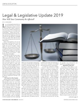 6 NEW ENGLAND CONDOMINIUM -JUNE 2019 NEWENGLANDCONDO.COM L aws, and the legal decisions that sup- port and enforce them, are constant- ly evolving and can affect every facet of community life in HOAs, condomini- ums and co-ops. While law and legal cases can emanate from any of our three levels of government – federal, state or local – most of the developments that affect hous- ing come from the bottom up, with local and state law often defining or redefining what co-op, condo, HOA, and even own- ers of rental housing may and may not do within the law. Much of the legislation and case law pertaining to housing derives from the federal Fair Housing Act, which was signed into law by President Lyndon Johnson in 1968 around the time of the civil rights movement. The law exists pri- marily to protect against race-based dis- crimination in housing, but it has gone on to represent and promote a much broader range of principles. Aside from non-discrimination, hous- ing law and legislation also deal with safety, equity, and the ability of local gov- ernments to tax real estate owners. This type of legislation and specific case law more than likely originates at the local and state level. Often as a result, indi- vidual statutes and cases apply to specific localities. A decision handed down in a New York court may not affect commu- nities in Massachusetts, though a similar case could result in a similar decision in more than one locale. Similarly, a statute may apply to a co-op or condo in one city and not in the neighboring one, resulting in different requirements literally a few miles apart. Two Cases From New England Howard Goldman, a partner at the law firm of Goldman & Pease in Needham, Massachusetts, points out two recent cases that demonstrate the ability of the courts to define protections and rights under current law. In the first case, Trust- ees of Cambridge Point vs. Cambridge Point, the Supreme Judicial Court in Mas- sachusetts ruled against so-called ‘poison pill’ clauses in condominium governing documents that may have been placed there to prevent a condo association from successfully suing its developer. Goldman explains that in the Cambridge Point case, this particular condominium association was left with over $2,000,000 worth of construction defects, but the association’s governing documents re- quired approval from fully 80 percent of the ownership in order to sue for damag- es. The developer still owned 20 percent of the units, which meant 100 percent of individual unit owners would have to ap- prove the suit in order to move forward. In addition, the suit had to be brought within 60 days and the association board had to produce an estimate of what the legal process might cost the association to conduct. The feeling was that owners might be alarmed if the cost to bring the proceeding appeared more costly than the cost to cure the construction defects. The court ultimately ruled that poison pill clauses were not in the public inter- est. “The court looked at gross negligence and warranty of habitability to make its judgment,” says Goldman. “The decision may be appropriate for the legislature to amend the condo statute to avoid these poison pill clauses.” He advises condo as- sociations that if they have this type of clause in their documents, they should amend the documents to remove them. A second case outlined by Goldman is Rauseo vs. Board of Assessors , which looked at the taxation of parking ease- ments. “In Boston, the state began to assess unit owners for their ownership of parking spaces,” explains Goldman. “Purchasing indoor parking in Boston is quite expensive – often $40,000 to $100,000 per space – and the city thought they could make some money from this. The defense has always been that the user isn’t really the owner; it’s an ease- ment. And often the entire parking area is what’s called an easement in gross. The second defense is that the space is part of the common area of the condomini- um. What the court response said was that easements in gross are not actually part of the common area. The court also made the distinction that often these are easements in gross that the developer re- serves for itself – not the condominium.” The lower court found for the city, and the appellate court affirmed the city’s right to tax ownership of parking. Meanwhile, in New York... According to Mark Hakim, a com- munity law attorney with the New York- based firm Schwartz Sladkus Reich Greenberg Atlas: “Co-ops and condo- miniums are subject to more and more legislation affecting how they govern. But in a cooperative, where the apart- ment corporation owns the building and each shareholder lives in an apartment via a proprietary lease, many laws are ap- plicable that do not affect condominium buildings. For example, Local Law 55 of 2018, \\\[which addresses\\\] indoor asthma and allergen hazards in residential dwell- ings, as well as pest management, went into effect as of January 19, 2019. It ap- plies to all multiple dwelling property owners, which includes co-ops. This law requires the owners to investigate and remediate indoor allergen hazards such as mold, mice and rats, and cockroaches. When it comes to mold, the new law re- Legal & Legislative Update 2019 How Will Your Community Be Affected? BY A J SIDRANSKY ISTOCKPHOTO.COM LAW & LEGISLATION continued on page 18