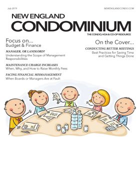 July 2019 NEWENGLANDCONDO.COM THE CONDO, HOA & CO-OP RESOURCE CONDOMINIUM NEW ENGLAND Focus on... Budget & Finance MANAGER, OR LANDLORD? Understanding the Scope of Management Responsibilities MAINTENANCE CHARGE INCREASES When, Why, and How to Raise Monthly Fees FACING FINANCIAL MISMANAGEMENT When Boards or Managers Are at Fault On the Cover... CONDUCTING BETTER MEETINGS Best Practices for Saving Time and Getting Things Done