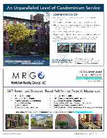 NEWENGLANDCONDO.COM NEW ENGLAND CONDOMINIUM -JULY 2019 13 clientsvc@jbutlerpropertymgmt.com | P: 978-694-9004 F: 978-694-9008 | www.jbutlerpropertymgmt.com COMPANY OVERVIEW • Family owned and managed Massachusetts based property management company • Offers superior construction-related expertise and resources • Blends management expertise with open communication between the board, unit owners and managing agent, making for a healthier property • Superior vendor and cost management • Deployment of in-house maintenance and grounds-keeping crews At J. Butler Property Management, LLC, we measure our success in terms of client satisfaction and take a long-term view of every relationship. A Company you can trust... A Company you can depend on... A Company of Professionals!!! An Unparalleled Level of Condominium Service