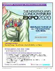 OVER 175 EXHIBITORS! EDUCATIONAL SEMINARS! NETWORKING! • Save time and build relationships – Meet with over 175 exhibitors offering endless solutions in every area including building management, insurance, security, landscaping, maintenance, energy, telecommunications, plumbing, HVAC, fuel, interior design, and more. • Learn from the experts – Attend educational seminars. • Receive FREE expert advice – Visit our FREE Advice Booths and get valuable guidance from our legal, financial, management and building experts. • Win great door prizes. WHO SHOULD ATTEND Property Managers, Board Members, Condo & HOA Decision Makers Free Registration: ne-expo.com TUESDAY, MARCH 31, 2020 • 10AM - 3:30PM S EAPORT W ORLD T RADE C ENTER , B OSTON , MA One Day. One Location. Endless Solutions. ONE PLACE TO PICK UP ALL THE SOLUTIONS YOU NEED. ne-expo.com ATTENTION Property Managers, Board Members, and Decision Makers NEWENGLANDCONDO.COM NEW ENGLAND CONDOMINIUM -FEBRUARY 2020 3