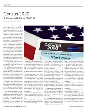 6 NEW ENGLAND CONDOMINIUM -APRIL 2020 NEWENGLANDCONDO.COM SECURITY Census 2020 Be Counted Safely During COVID-19 BY THE BETTER BUSINESS BUREAU This year, due to the coronavirus pan- demic, Census takers will not be able to visit neighborhoods door-to-door to re- quest survey responses as they did during previous counts. Instead, Census responses are now being requested online through 2020Census.gov and by telephone. This situation has opened up a world of oppor- tunity for scammers posing as government Census officials and taking advantage of the current crisis to trick people into giving up personally identifying information. “We encourage every citizen to fill out the 2020 Census, but to be extremely wary of Census-related fraud,” says Claire Rosen- zweig, President and CEO of Better Busi- ness Bureau (BBB) Serving Metropolitan New York. “The safest ways to respond are to contact the Census directly through their website at 2020Census.gov; by phone at a number posted on the Census website; by mail in response to an official printed Cen- sus Bureau survey; or through the web ad- dress provided in an official Census mailing you may have received at home.” Knowing how the Census Bureau oper- ates can help you distinguish between legiti- mate invitations to participate and ones that will never ask for your full Social Security representative. If it is determined that the by the caller to verify the caller’s identity. are probably fraudulent. The Census Bureau might request infor- mation through almost all communication credit account numbers, or your mother’s local police department. outlets, including phone, email, mail, or fax. maiden name. The Census Bureau also does However, the Census Bureau states that they not ask about citizenship status in their sur- will not send unsolicited emails requesting vey. participation in the 2020 Census. Emails claiming to be from the Census Bureau may politan New York offers these tips to help it card number, money, or donations. be ‘phishing’ attempts to obtain personal in- formation, and should be viewed with great caution. Additionally, since in-person visits by is suspended until at least April 15 due to be from the Census, hang up. Census Bureau field representatives were COVID-19, and possibly longer; if someone suspended effective March 18 through April comes to your door requesting information through 2020Census.gov, the official web- 15 and likely beyond, anyone going door- to-door requesting personal information impostor. Once it is announced that field be able to help. during that time frame is almost certainly work has resumed, check these tips from an impostor. There are three ways to reply to the Cen- sus: by phone, by mail, or online. The official website of the Census Bureau is Census.gov, ers must present a field badge that includes misspellings or improper extensions like Business Bureau has been helping people while the homepage for the 2020 Census a photograph of themselves, a Department .com or .net. specifically is 2020Census.gov. Responding of Commerce watermark, and an expiration to the Census is as easy as visiting the offi- cial Census Bureau web page and answering the prompts. The survey is very short and sus Bureau laptop or cellphone, as well as a cy’s website. Don’t click on any links in an tion, or to reach your local bureau office. can be completed in just a few minutes. While some of the information the Cen- sus requests is personal, the Census Bureau 8282 to speak with a local Census Bureau ed phone number other than one provided number, money, donations, anything on visitor who came to your door does not behalf of a political party, your full bank or work for the Census Bureau, contact your thing that comes from an anonymous or Better Business Bureau Serving Metro- you get counted while avoiding scammers: Be on the lookout for Census Bureau behalf of a political party. If someone calls of your account number, or other personal- impostors. All Census Bureau field work on behalf of a political party that claims to izing information, as these could be phish- for the Census, that person is probably an site. Your regional Census Bureau may also sus Bureau the Census Bureau to identify legitimate only websites you should be using to fill out census takers: Ask to see their ID Badge. Census tak- date. Census workers will be carrying a Cen- bag with a Census Bureau logo. If you still have questions, call 800-923- Never give out your Social Security emails, text messages, or links on social me- number or financial information. Census dia. Such communications are likely to be takers will never ask for your full Social Se- curity number, bank account number, cred- Census takers will never contact you on that don’t include your name, the last digits Make sure you respond to the Census Census.gov and 2020census.gov are the cling around. the 2020 Census. Be wary of any small vari- ations in the website address, such as tiny If something sounds suspicious, check can trust. There are local, independent on it by calling the government agency di- rectly, or by checking the government agen- unsolicited email. Instead, type the official web address into your browser, or do a web search to find the right website. Call a trust- Don’t click, download, or open any- suspicious-looking sender. That goes for an attempt to gain access to your personal information or install malware on your computer. Always be wary of generic emails ing attempts. Check the Census.gov page about this year’s count for the ways in which the Cen- will contact you, and check here to investigate any rumors that may be cir- Check BBB Scam Tracker for local re- ports of impostors in your area. For more than 100 years, the Better find businesses, brands and charities they BBBs across the United States, Canada and Mexico. Visit BBB.org for more informa- n